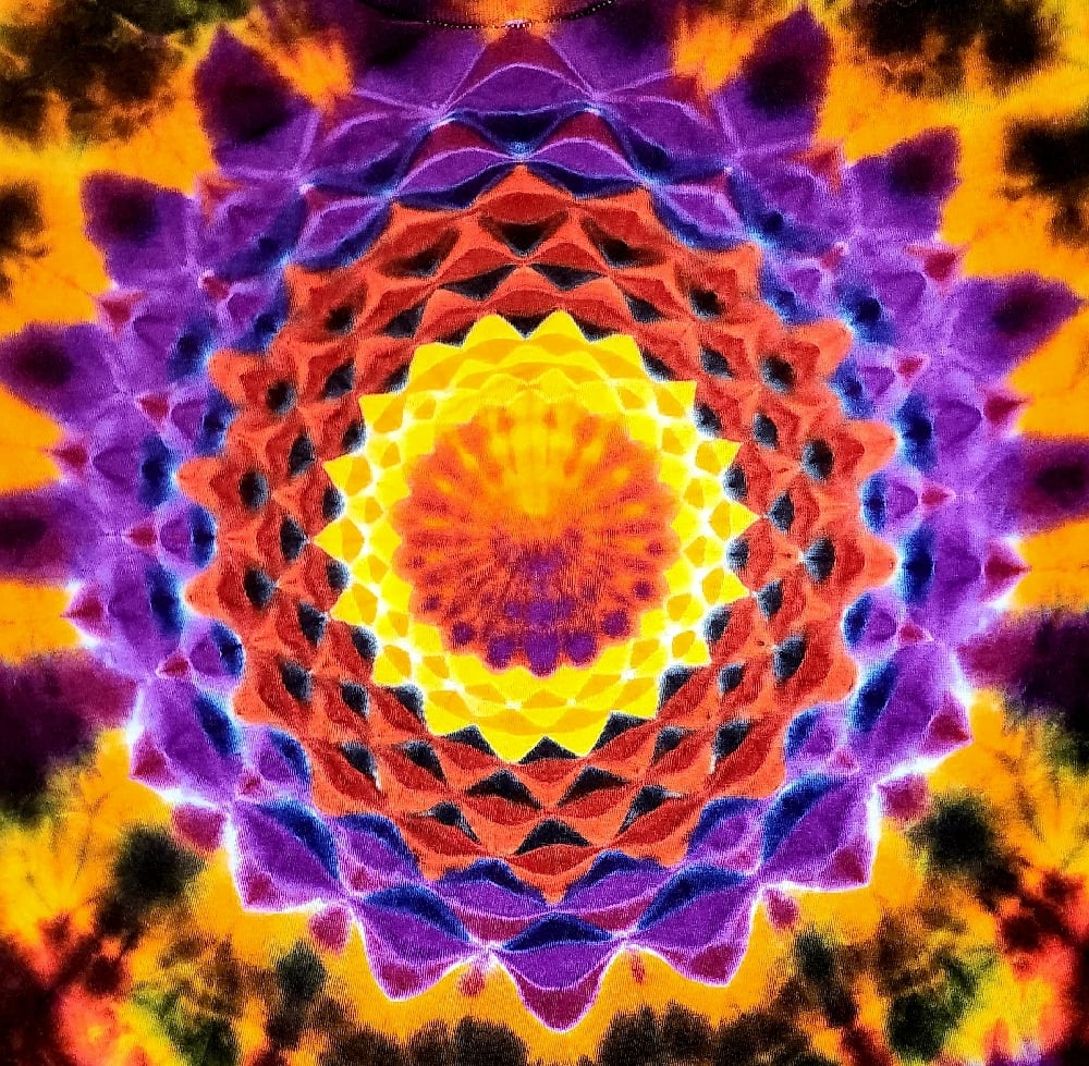 18 point mandala with a spine honeycomb back piece. Scrunch background.